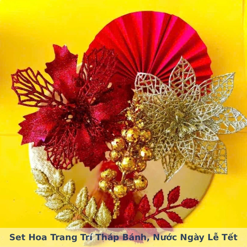 Đón Tết An Khang với Set Hoa Trang Trí Tháp Bánh/Nước Cao Cấp