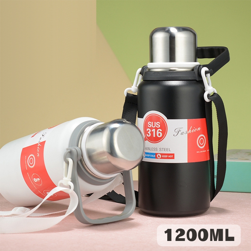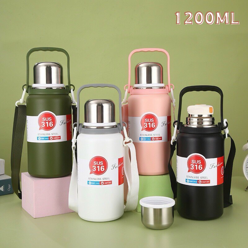 SG: Bình Nước Giữ Nhiệt Vacuum Cup Có Nắp Bạc Kèm Quai Xách 1200ML