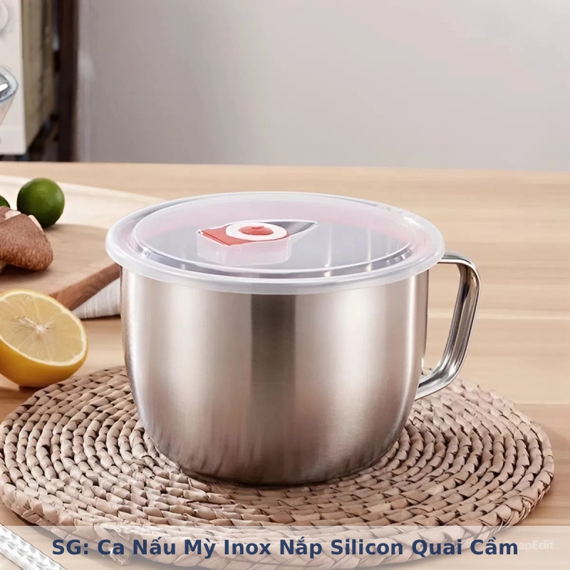 Chất liệu Inox Cao Cấp: Ca được làm từ inox không gỉ bền bỉ, an toàn cho sức khỏe, dễ dàng vệ sinh và giữ nhiệt tốt, giúp mì của bạn nóng lâu hơn.