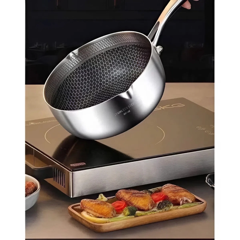 Thiết Kế Sâu Lòng 18cm: Kích thước 18cm lý tưởng cho các nhu cầu nấu nướng hàng ngày như làm sốt, luộc mì, nấu cháo, súp, hoặc chiên xào lượng nhỏ. Thiết kế sâu lòng giúp hạn chế dầu mỡ và thức ăn bắn ra ngoài.
