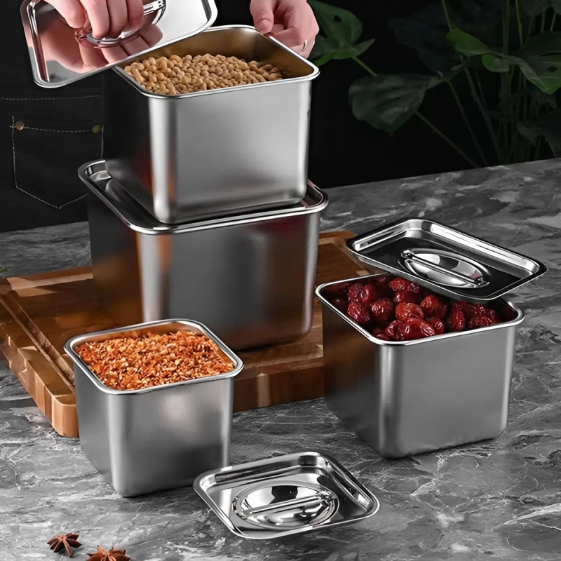 Kèm Nắp Đậy Bảo Quản: Có kèm nắp đậy Inox giúp bảo vệ thực phẩm khỏi bụi bẩn, côn trùng, và giữ nhiệt/độ tươi tốt hơn khi không sử dụng.