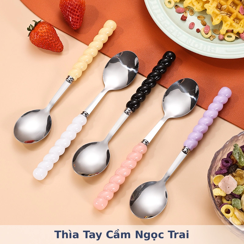 Phần tay cầm được thiết kế dạng ngọc trai tinh tế, mang vẻ đẹp hiện đại và thanh lịch, phù hợp cho cả bữa ăn gia đình lẫn tiệc tùng, nhà hàng cao cấp.