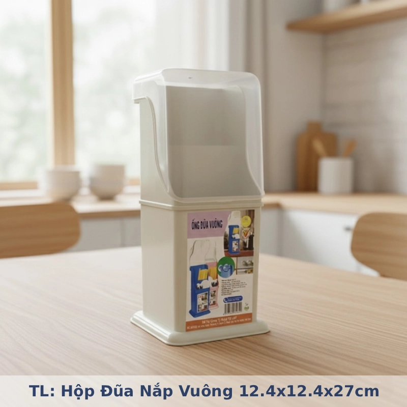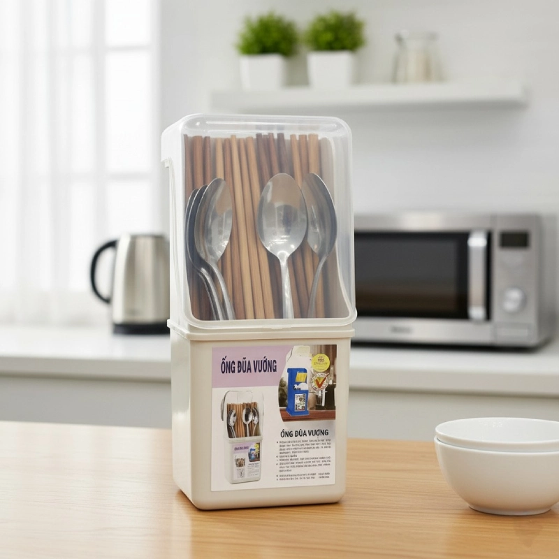 Thiết kế thông minh: Có nắp đậy trong suốt, giúp bảo vệ đũa, thìa, muỗng khỏi bụi bẩn, côn trùng, giữ vệ sinh tuyệt đối cho dụng cụ ăn uống.