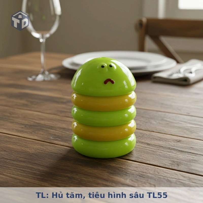 Thiết kế độc đáo: Hình dáng chú sâu tròn trịa, màu xanh lá và vàng tươi tắn, tạo cảm giác ngộ nghĩnh và vui mắt. Chắc chắn sẽ thu hút sự chú ý của các bé và cả gia đình.