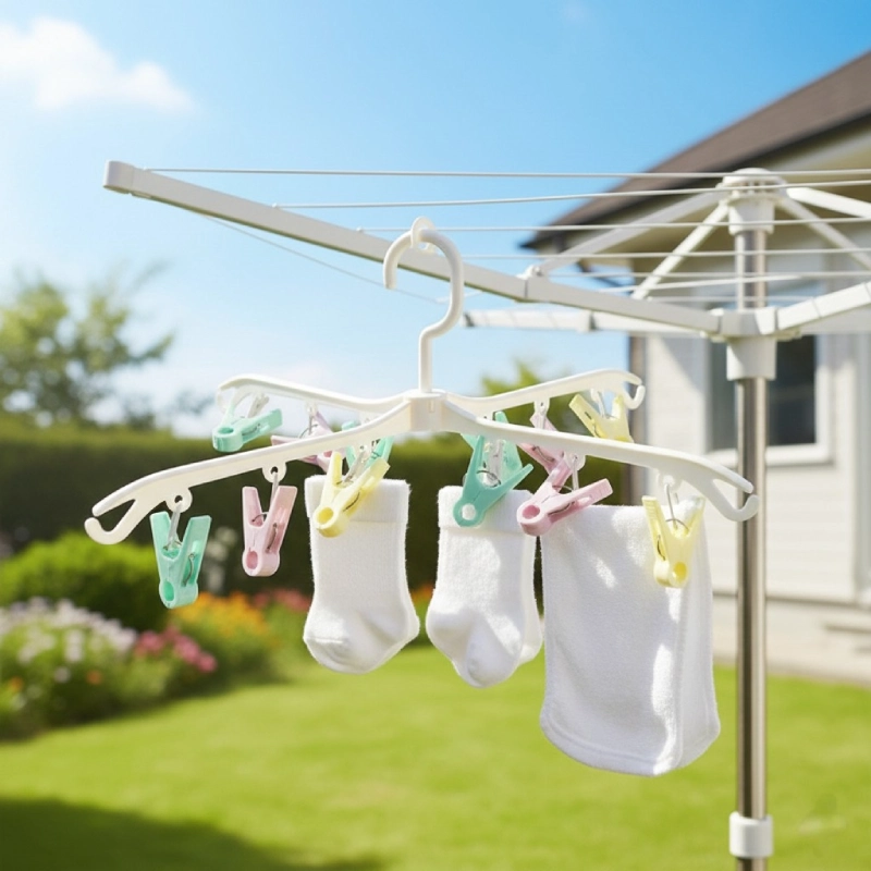 Chất liệu bền bỉ: Làm từ nhựa cao cấp, chịu được nắng mưa tốt, kẹp giữ đồ chắc chắn mà không làm hằn hay hư hại quần áo.