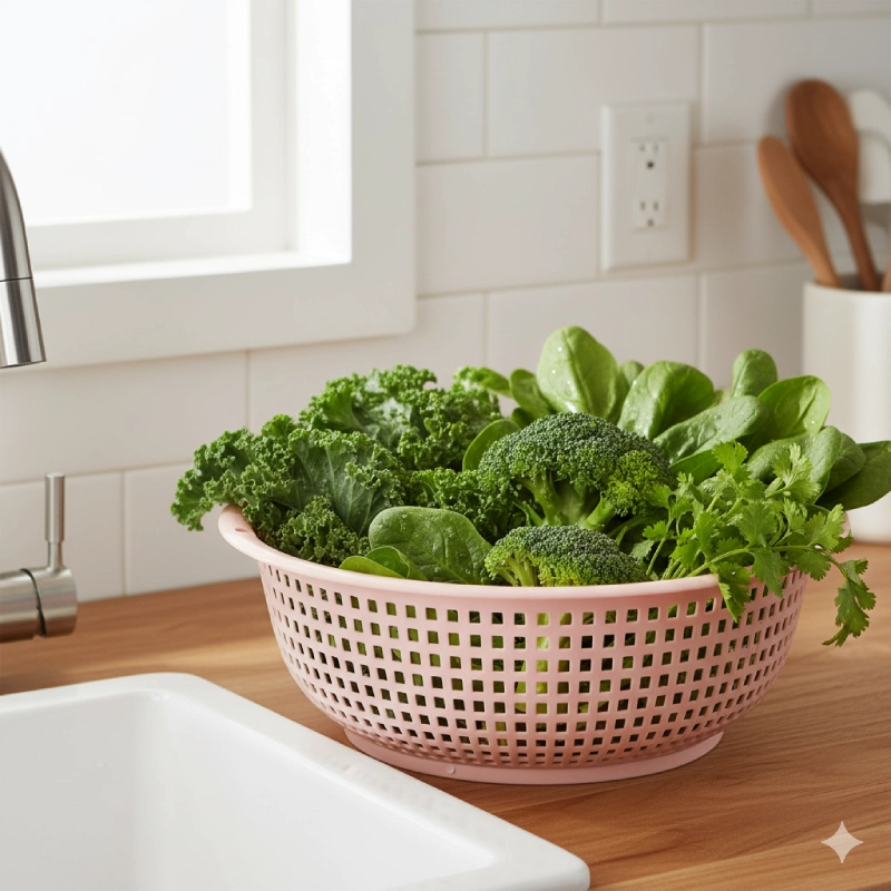 Thiết kế thông minh: Rổ có nhiều lỗ nhỏ li ti phân bố đều khắp bề mặt, giúp thoát nước nhanh chóng và dễ dàng, lý tưởng cho việc rửa và làm ráo rau củ.