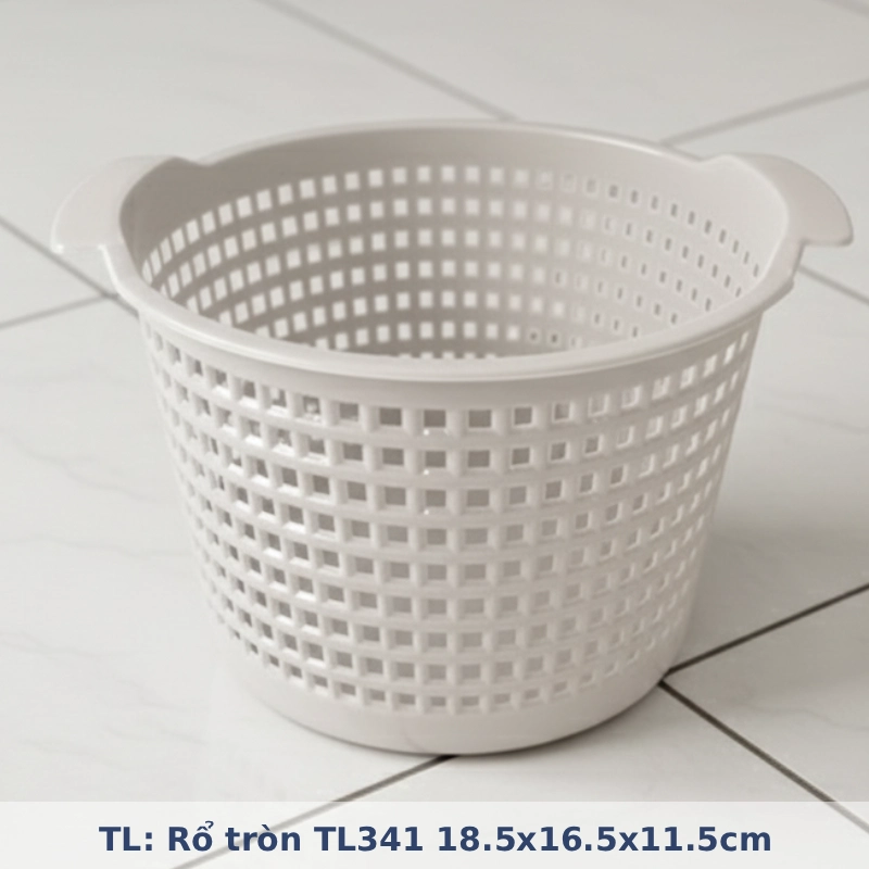 Thiết Kế Thoáng Khí: Bề mặt rổ được làm từ chất liệu nhựa cao cấp, đục lỗ/lưới đều đặn (tùy thuộc vào hình ảnh thực tế của TL341), giúp thông gió, chống ẩm mốc và dễ dàng nhìn thấy vật dụng bên trong.
