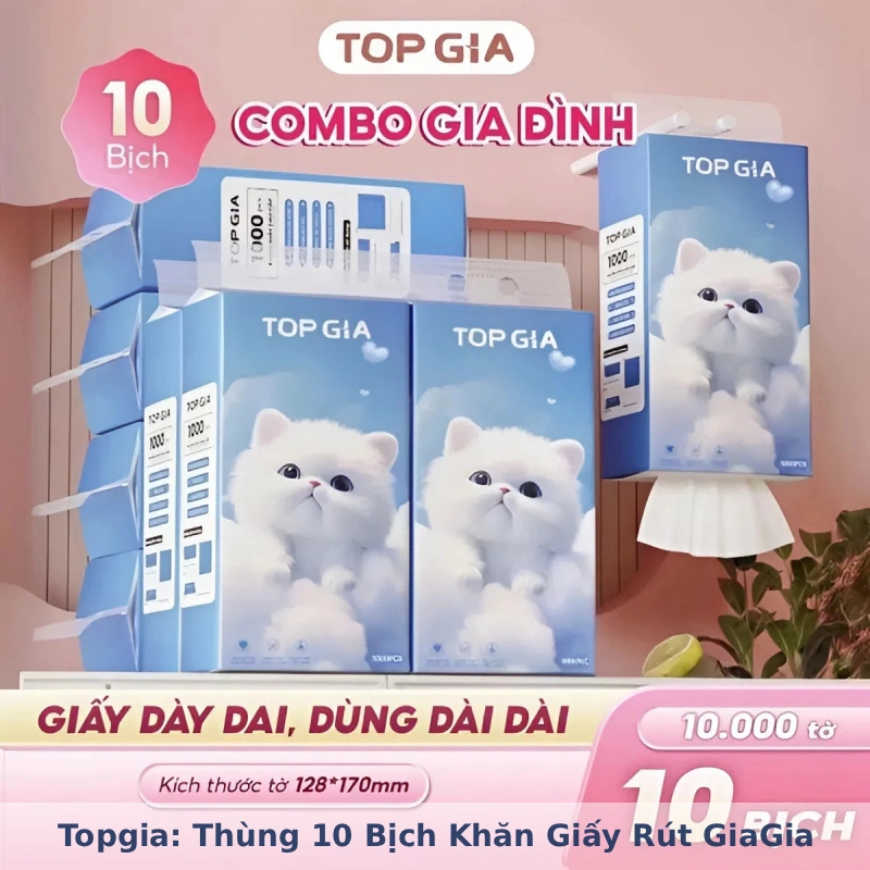 Topgia: Thùng 10 Bịch Khăn Giấy Rút GiaGia Mèo Trắng
