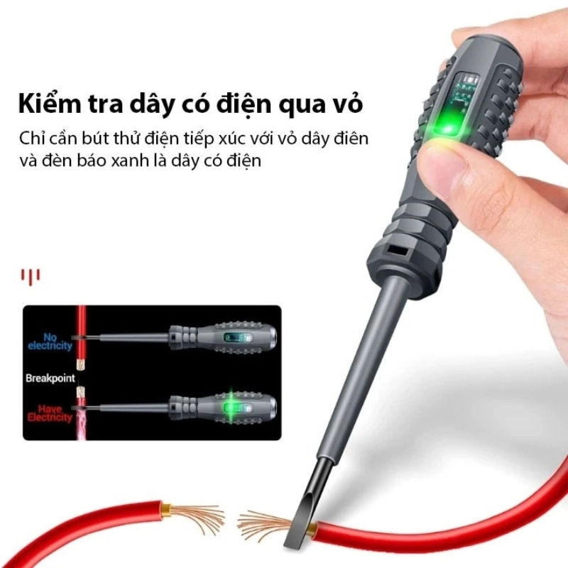 - Sản phẩm sẽ giúp cho công việc khi tiếp xúc với điện của bạn trở nên an toàn hơn rất nhiều khi bút có khả năng xác định cường độ dòng điện một cách chính xác để bạn có thể chủ động trong mọi tình huống.