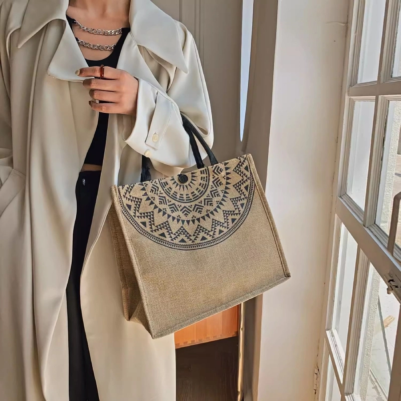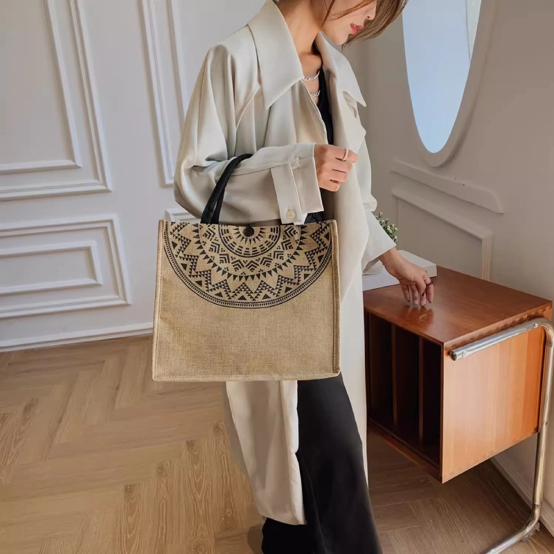 Chiếc túi cói với họa tiết 1/2 trống đồng cổ điển mang phong cách vintage, vừa thời trang vừa tiện dụng, thích hợp cho nhiều mục đích sử dụng hàng ngày.