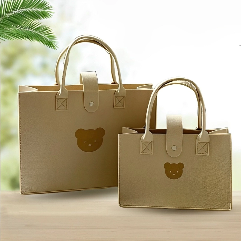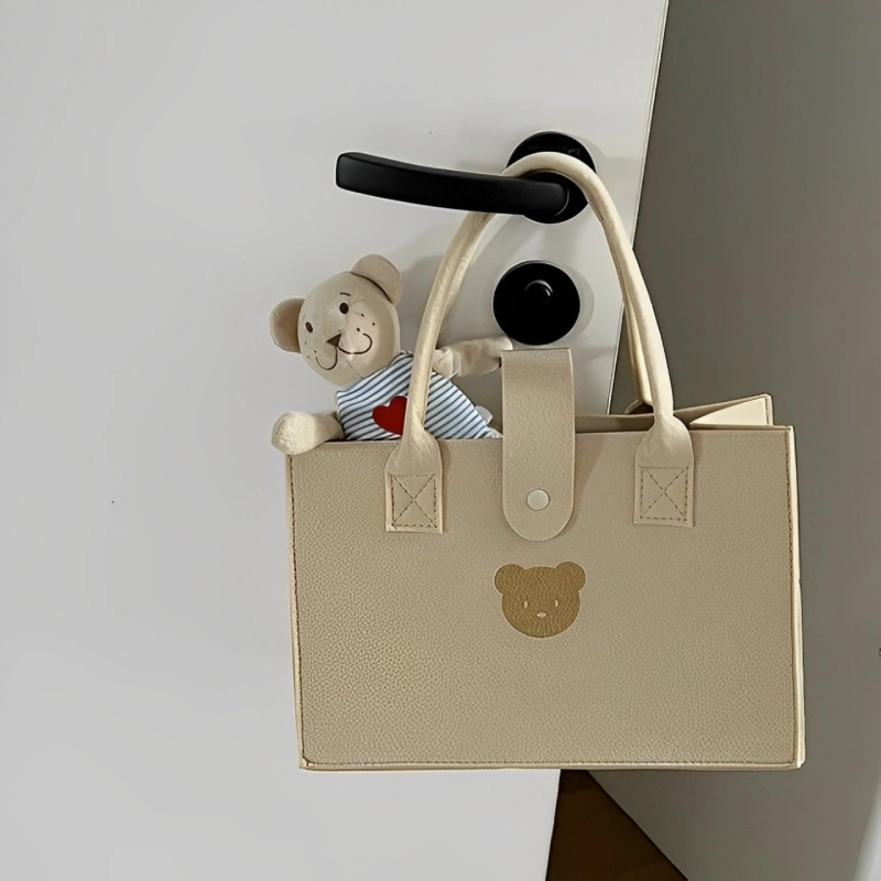 * Túi xách nữ vuông cầm tay hình gấu màu trà sữa chất nỉ siêu cute