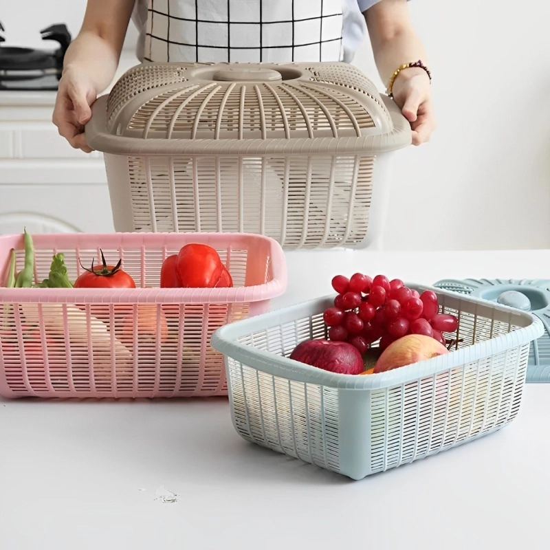 Rổ nhựa làm từ PP nguyên sinh, thiết kế nắp đậy kín giúp bảo vệ đồ dùng của bạn khỏi côn trùng và bụi bẩn.
