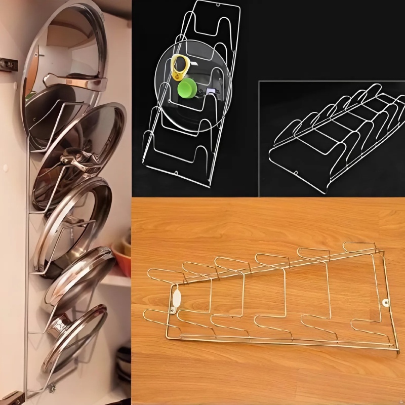 Với 6 tầng để úp vung nồi đa kích thước, bạn có thể phân loại và sắp xếp vung nồi một cách khoa học, giúp tiết kiệm tối đa diện tích bếp.